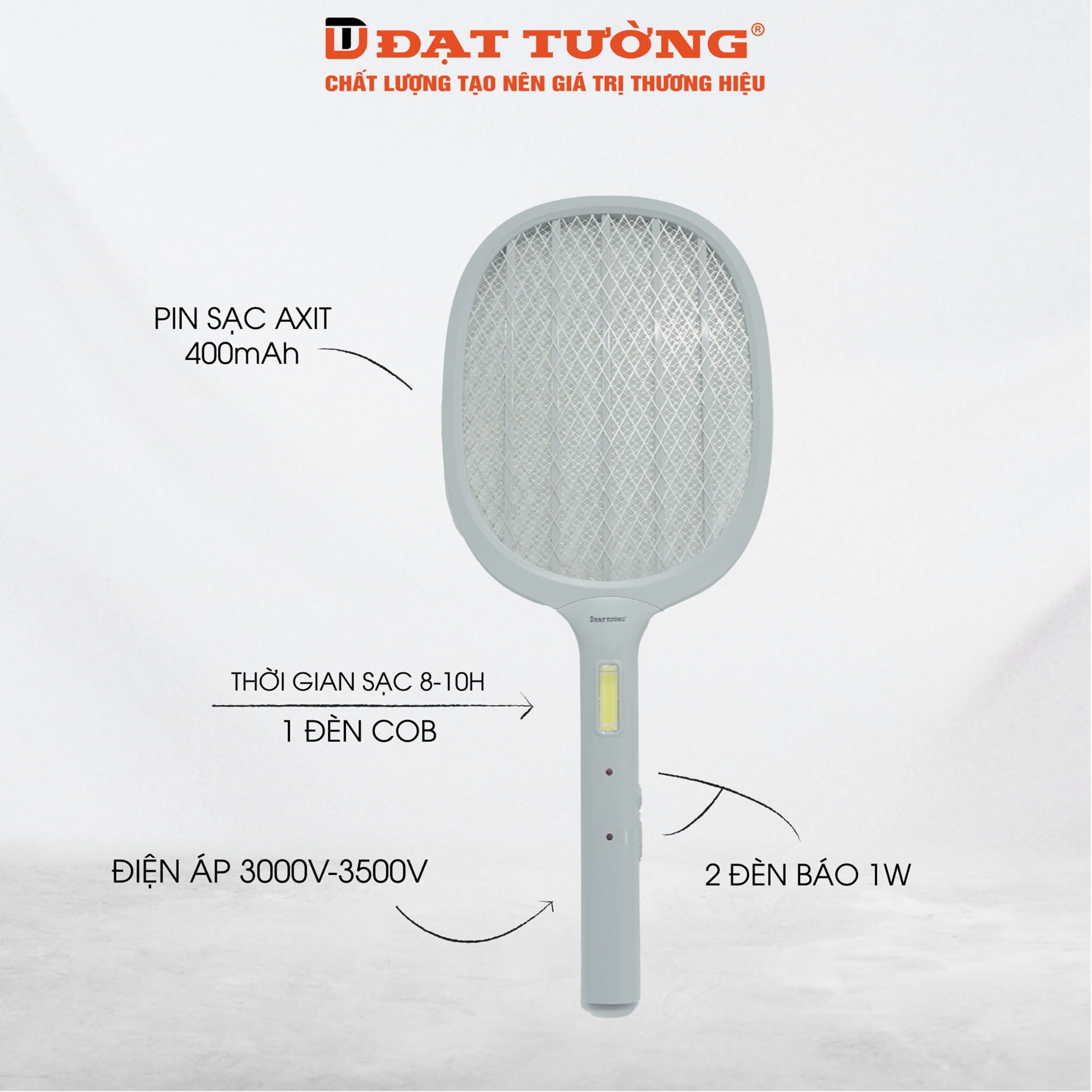 Vợt Bắt Muỗi Đạt Tường, Diệt Côn Trùng Bằng Lưới Điện, Sạc Tích Điện, Có Đèn Báo Sạc Pin Tiện Lợi- DTVM-06 ĐẶC ĐIỂM NỔI BẬT: Thiết kế ba lớp lưới, giúp tiêu diệt