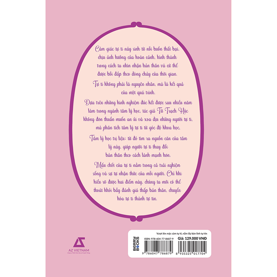 Dựa trên những kinh nghiệm đúc kết được sau nhiều năm làm trong ngành tâm lý học, tác giả Từ Trạch Húc không đơn thuần muốn an ủi và xoa dịu những người tự ti, mà phân tích tâm lý tự ti từ góc độ khoa học, tâm lý học trị liệu; từ đó tìm ra nguồn căn của tâm lý này, giúp người tự ti thay đổi bản thân theo cách lành mạnh hơn.