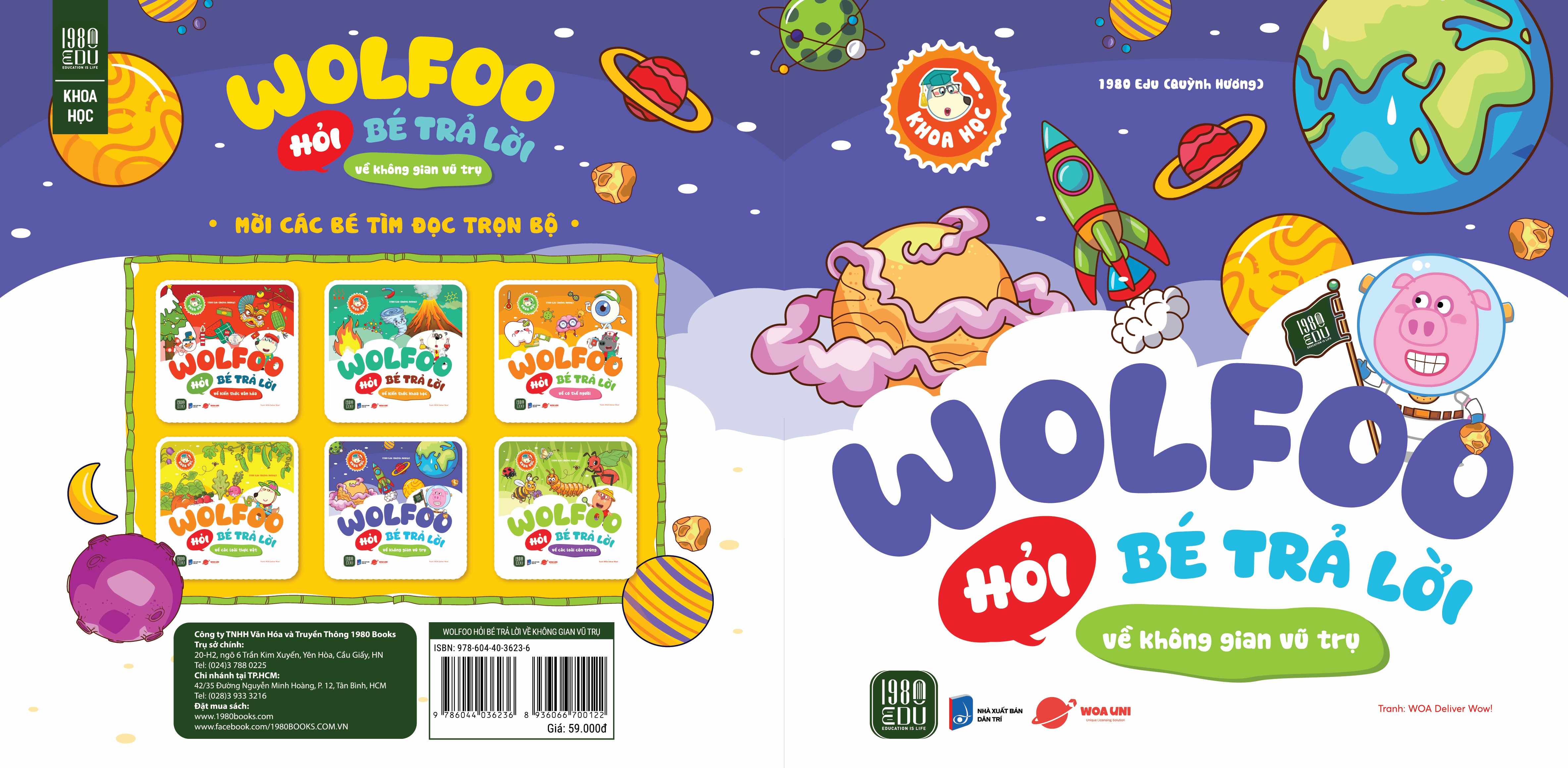 Cuốn sách “Wolfoo hỏi bé trả lời về không gian vũ trụ” nằm trong bộ sách WOLFOO HỎI BÉ TRẢ LỜI gồm 6 cuốn được chia thành nhiều chủ đề khác nhau giúp các em thỏa sức khám phá. Với hình ảnh minh họa sắc nét, sinh động và các kiến thức được giải thích chi tiết, ngắn gọn giúp các bạn nhỏ khám phá để hiểu hơn về các thói quen, tập tính sống của các loài côn trùng, đến những kiến thức bao la về vụ trụ rộng lớn.
