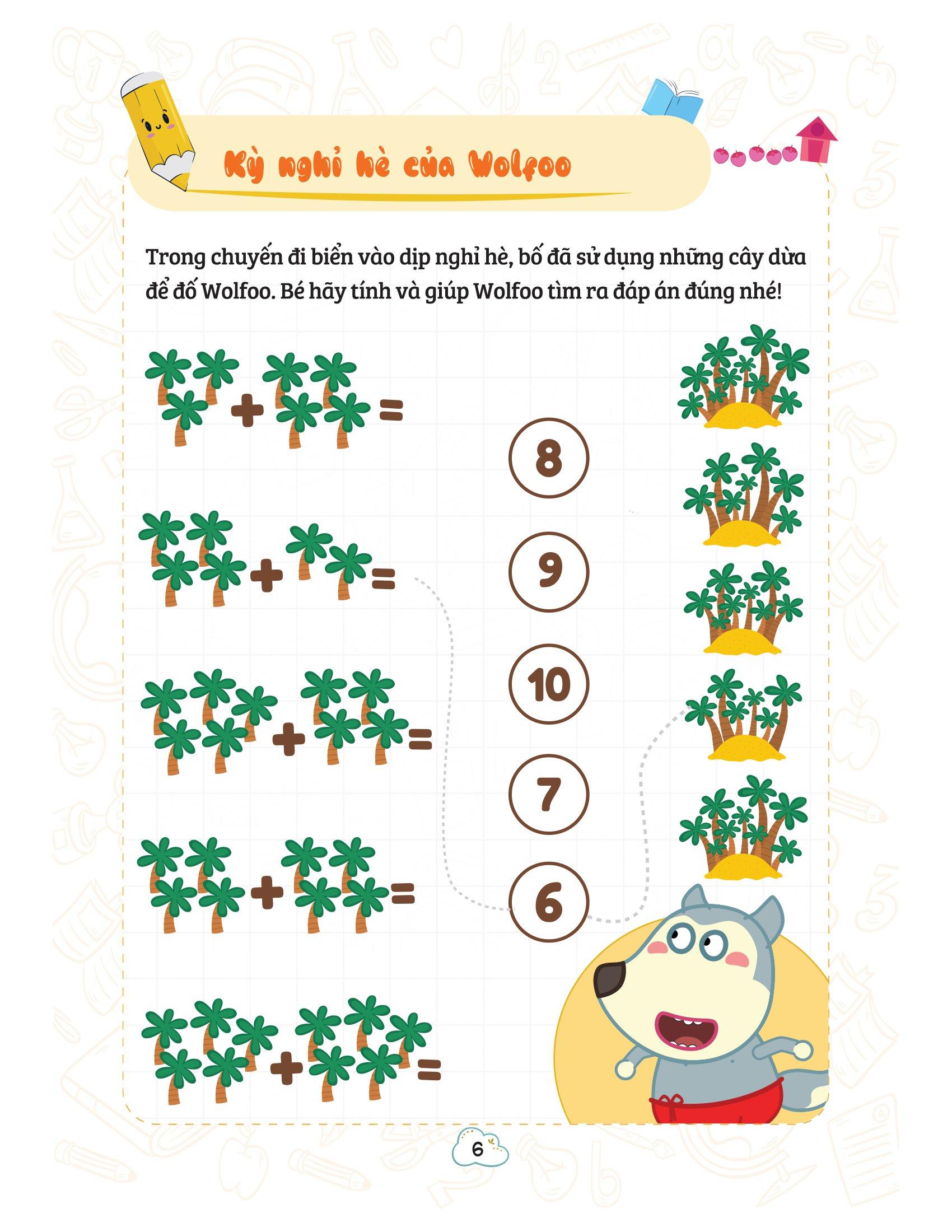Cuốn sách thuộc trong bộ sách “Wolfoo khám phá toán học vui” gồm 4 cuốn dành trẻ từ 3 đến 6 tuổi. Được thiết kế theo hướng giúp trẻ trải nghiệm, làm quen với những kiến thức toán học cơ bản như: số đếm, phép tính, so sánh và phân biệt các đối tượng, nhận biết hình học cơ bản…