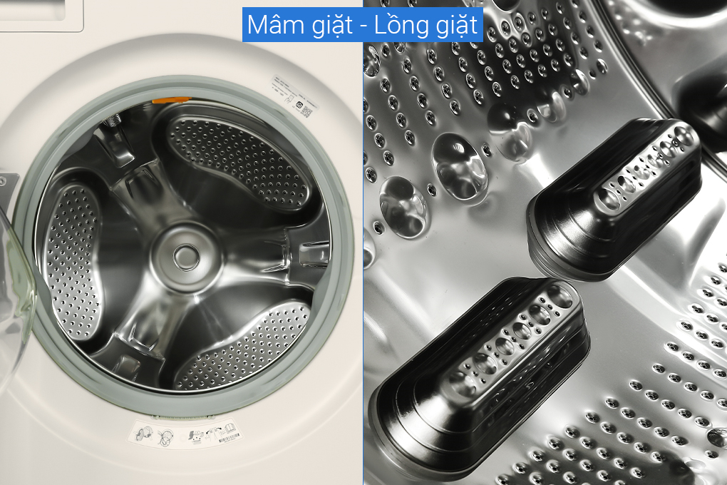 - Lồng giặt được làm bằng thép không gỉ sáng bóng và chống gỉ sét nên đảm bảo quần áo được giặt sạch tối ưu theo thời gian sử dụng. *Hình ảnh chỉ mang tính chất minh họa Khối lượng giặt và chương trình giặt