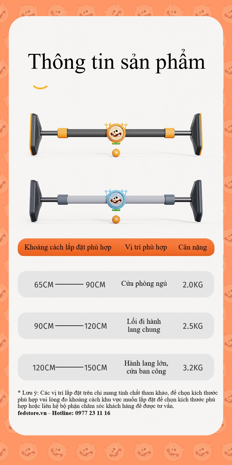 Mô Tả Sản Phẩm: Xà đơn gắn cửa cải tiến có chốt chống xoay (60cm-100cm)(82cm-130cm)(116cm-150cm) (Khách lựa chọn kích thước) Xà đơn có chốt chống xoay: Chiều dài : 62-100cm 82-130cm và 100-150cm Mẫu 62-100cm