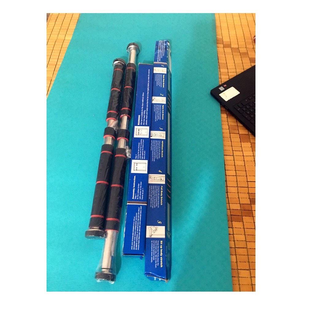 Mô Tả Sản Phẩm: Xà đơn gắn cửa cải tiến có chốt chống xoay (60cm-100cm)(82cm-130cm)(116cm-150cm) (Khách lựa chọn kích thước) Xà đơn có chốt chống xoay: Chiều dài : 62-100cm 82-130cm và 100-150cm Mẫu 62-100cm