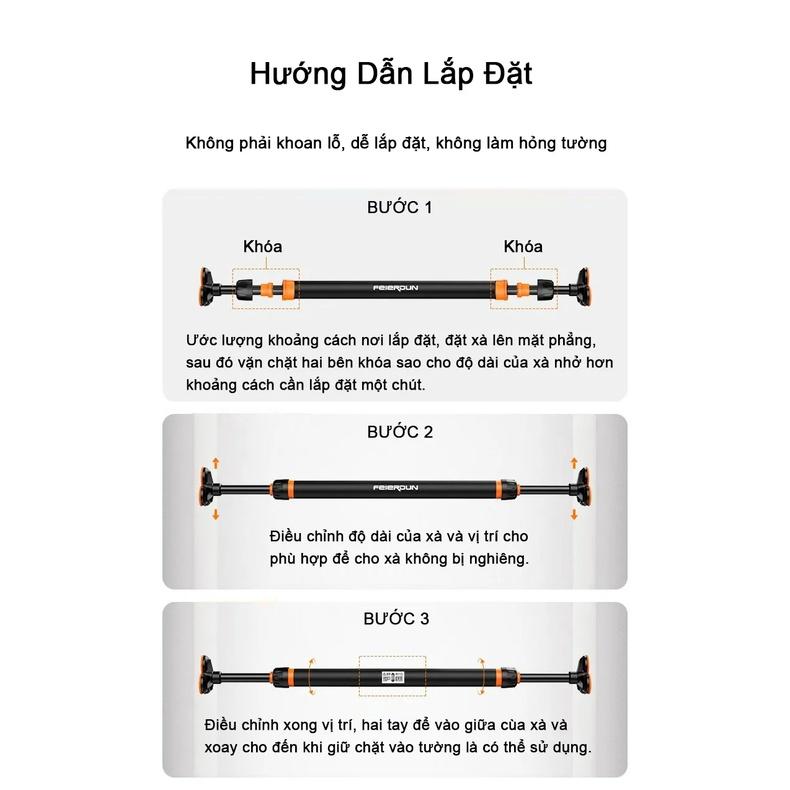 Tên Sản Phẩm XÀ ĐƠN GẮN CỬA FED Mã SP FED-0228 Màu Sắc Đen Cam Kích Thước 90cm - 115cm (Tùy chỉnh độ dài của xà theo kích thước cửa) Chất Liệu Thép carbon, PVC,