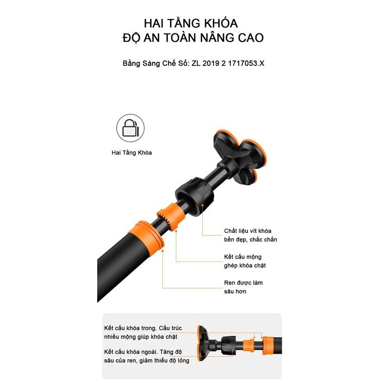 - Khóa an toàn chống xoay Chịu lực trên 200kg Thiết kế mới với 3 đệm giữ mỗi bên tăng độ bám và chắc chắc của sản phẩm