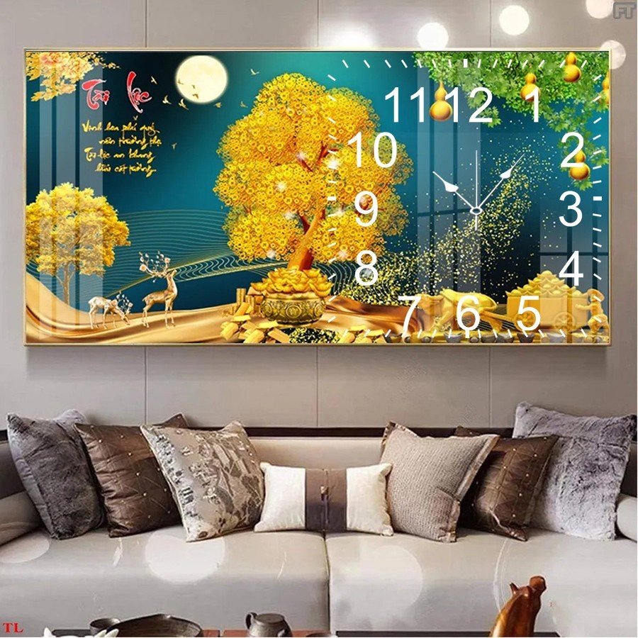 Tranh đồng hồ hươu vàng tài lộc - Kích thước của tranh : 35x70cm - 45x90cm -55x110cm-60x120cm - Khác h hàng muốn thay đổi sản phẩm tùy ý như: kích thước, màu sắc kim đồng