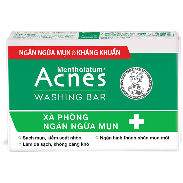 Mua tại TiktokXà phòng tắm và rửa mặt Acnes Washing Bar (75g) Xà phòng trị mụn lưng và rửa mặt Acnes Washing Bar 75g được nghiên cứu và phát triển phù hợp cho mọi loại da và mọi cấp độ mụn. Sản phẩm kết hợp các hoạt chất Kaolin, Zinc Oxide, Allantoin hiệu quả trong việc làm sạch sâu, kháng khuẩn và ngăn ngừa mụn cho các vùng da: mặt, cổ, vai, ngực và lưng..