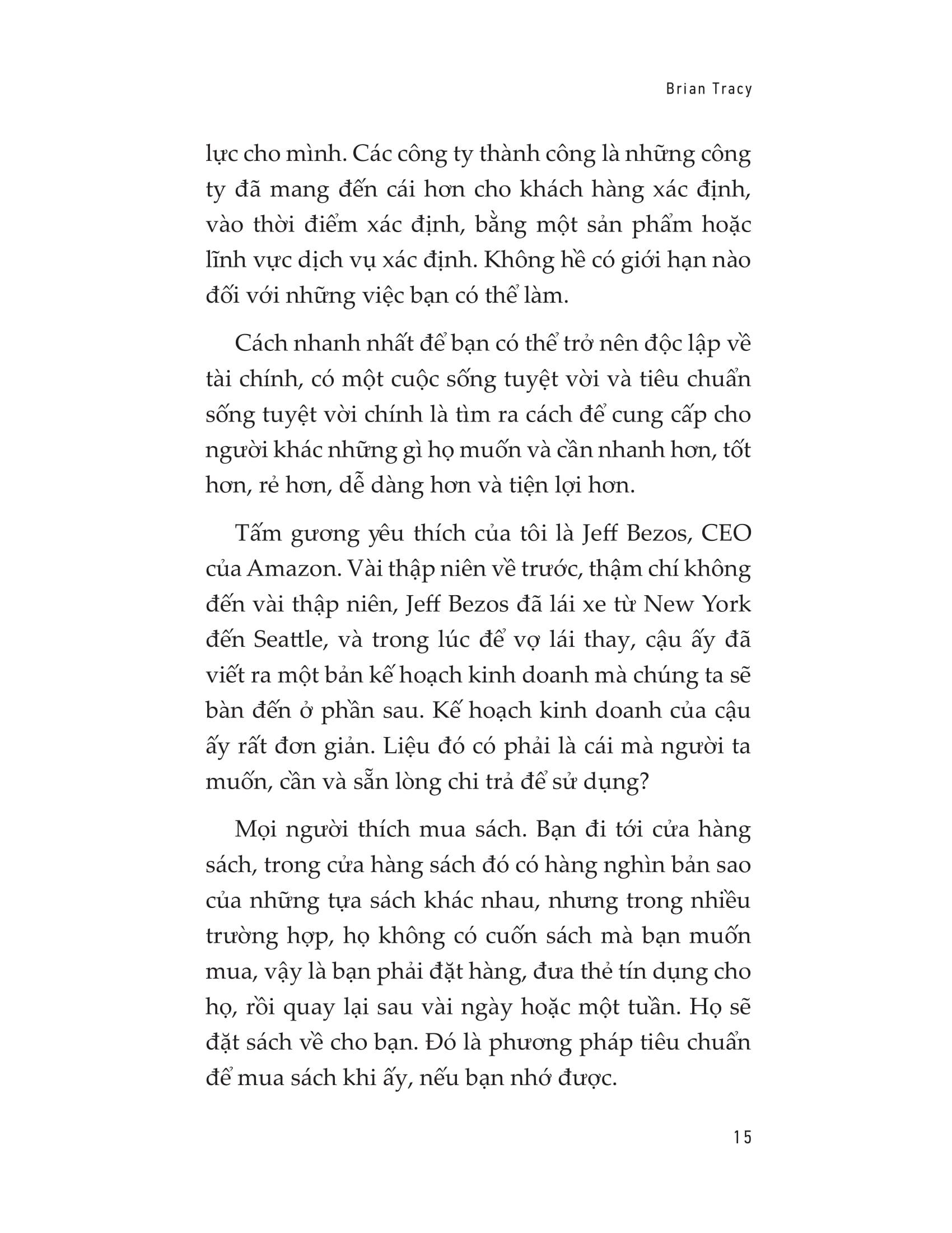 Qua cuốn sách này, Brian sẽ cho bạn thấy làm thế nào để tận dụng tất cả những quyền lợi ấy. Hãy khởi sự doanh nghiệp giàu lợi nhuận của chính bạn và phát triển doanh nghiệp đó lên bất kỳ quy mô về nhân sự và doanh thu nào mà bạn khao khát. Trên hết, Brian sẽ hướng dẫn bạn cách để làm cho doanh nghiệp của mình thành công và bền vững về lâu dài.