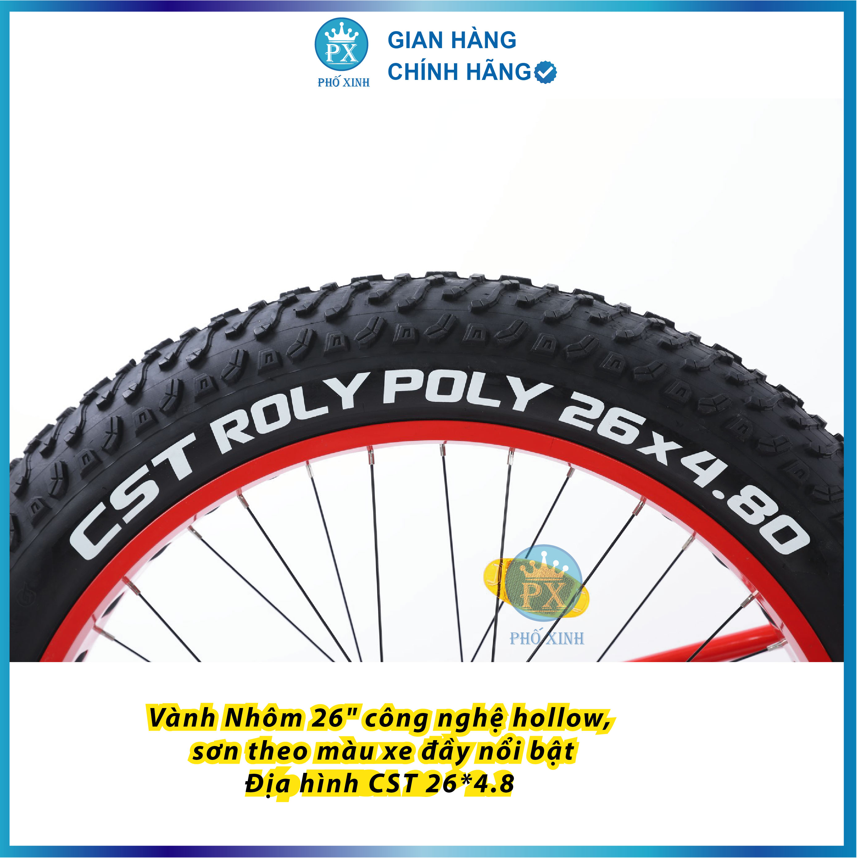 Chiếc xe đạp này được trang bị bánh xe vơi lốp LỚN CỰC NGẦU xe Địa hình CST 264.8 Ngoài ra, với vành xe là hợp kim nhôm 2 lớp Chevaux cứng cáp và nhiều gai, người dùng có thể yên tâm di chuyển trên những đoạn đường trơn trượt.