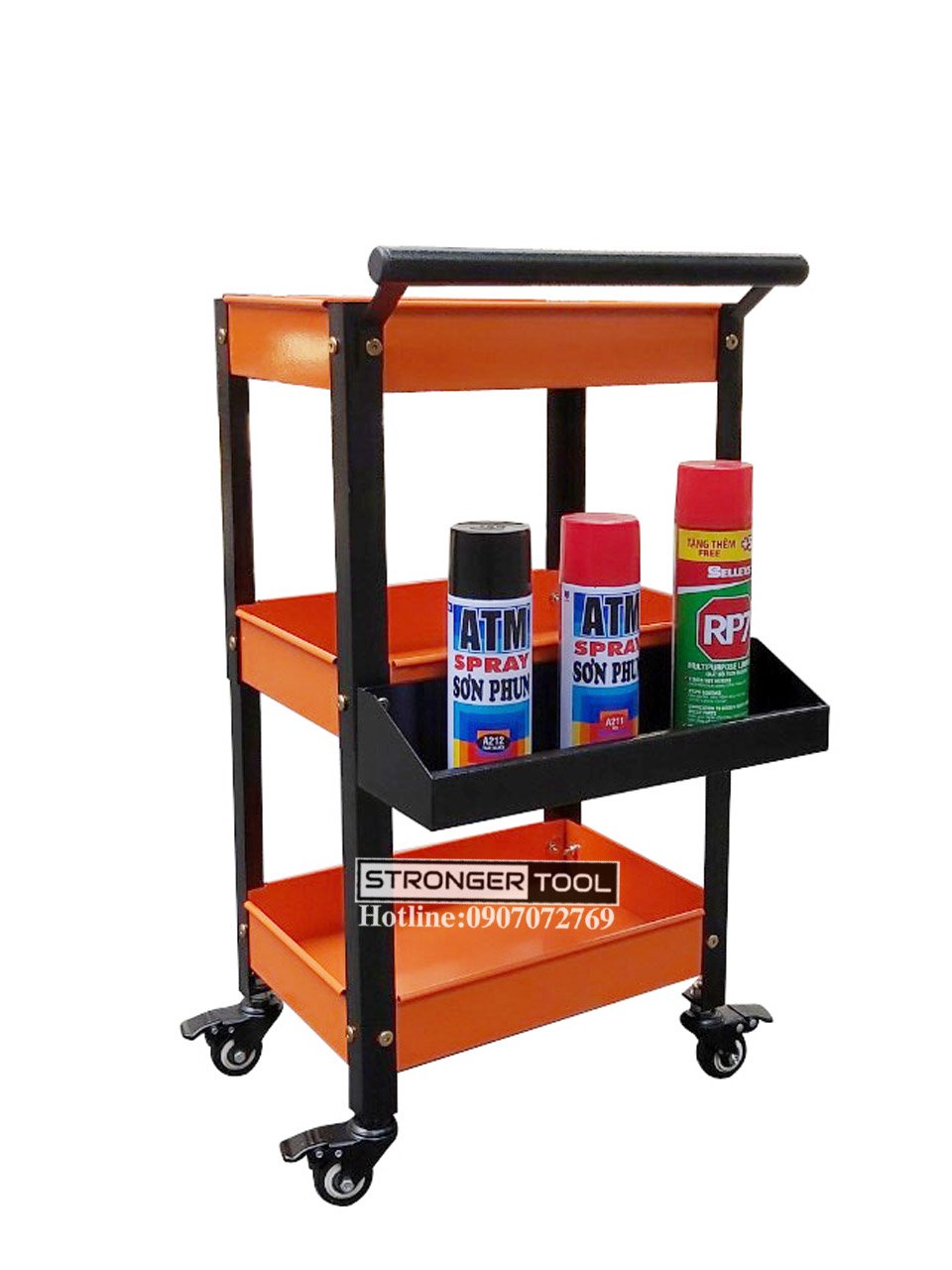 Xe đẩy dụng cụ mini 2 tầng - Chất liệu: thép, sơn tĩnh điện - Màu sắc: xanh biển, đỏ, vàng, đen, cam, hồng, xanh chuối - Số khay:3 + tay nắm - Trọng lượng: