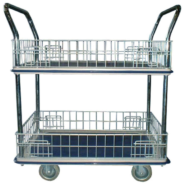 Xe đẩy hàng được thiết kế 2 tầng gọn gàng, hiện đại phù hợp để vận chuyển hàng hóa trong các cơ quan, siêu thị, nhà máy, các xí nghiệp… Sản phẩm có sàn xe