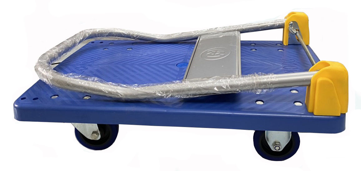Xe được ứng dụng để chở hàng hóa, chở tiền Kiểu xe: xe đẩy sàn nhựa gấp gọn Kích thước : 600 x 900 x 860mm Đường kính bánh xe: 125mm Tải trọng: 300kg Trọng
