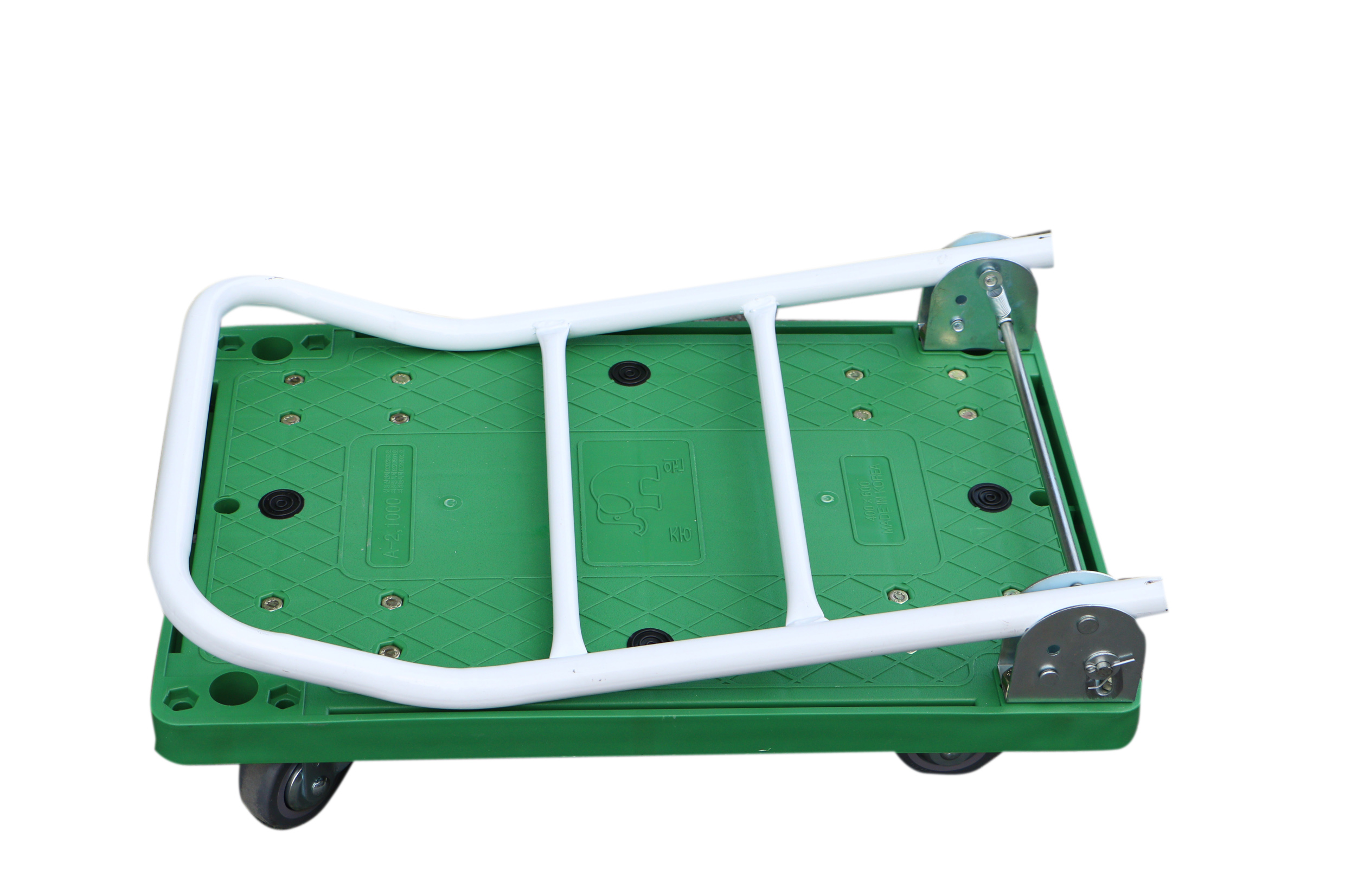 Xe được ứng dụng để chở hàng hóa, chở tiền Kiểu xe: xe đẩy sàn nhựa gấp gọn Kích thước : 600 x 900 x 860mm Đường kính bánh xe: 125mm Tải trọng: 300kg Trọng