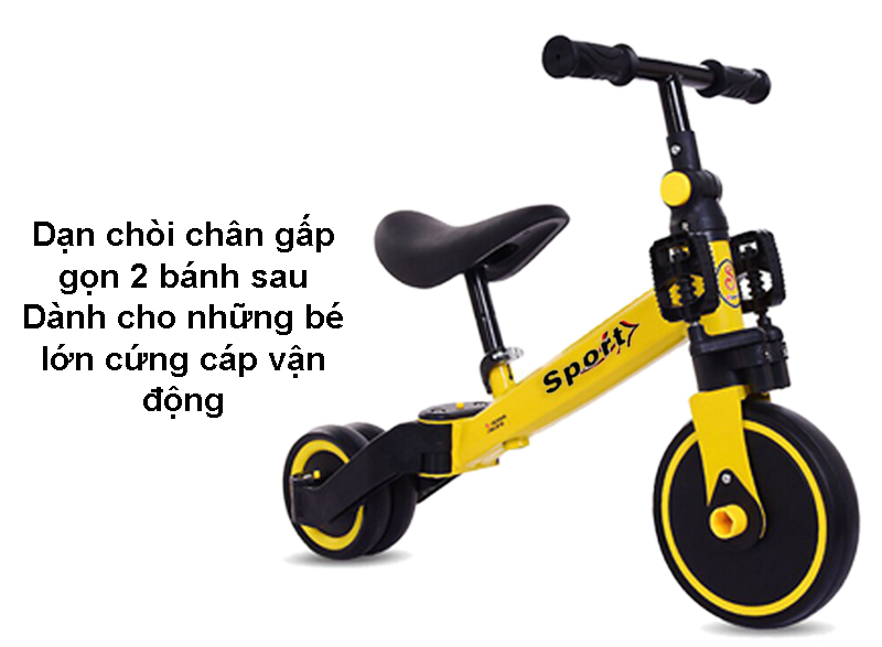 - Hỗ trợ phát triển vận động: Xe thăng bằng và xe chòi chân Sport giúp bé phát triển kỹ năng cân bằng, tăng cường sức mạnh cơ bắp và tăng khả năng vận động. Việc sử dụng hai loại xe khác nhau cùng một lúc giúp bé phát triển toàn diện hơn.