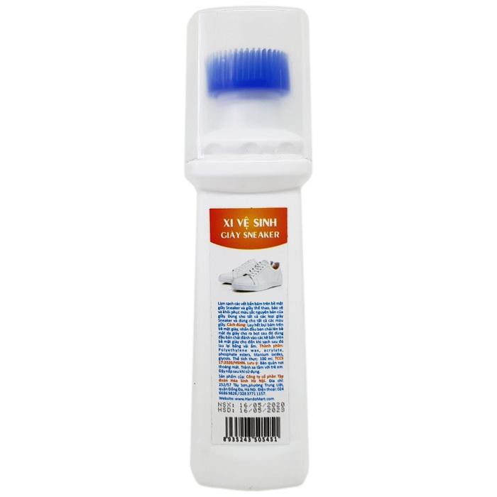 MÔ TẢ SẢN PHẨM Làm sạch các vết bẩn, vết ố nhanh chóng, giúp đôi giày của bạn sáng bóng, trắng sạch như mới. Sản phẩm không làm ảnh hưởng tới chất liệu da và không làm hại tới sức khỏe của bạn vì nó rất an toàn. Dùng được trên các chất liệu: da, da lộn, vải, cao su,... THÔNG TIN SẢN PHẨM Tên sản Phẩm : Xi vệ sinh giầy thể thao HANDO 100mlCông dụng: Làm sạch các vết bẩn, vết ố nhanh chóng, giúp đôi giày của bạn sáng bóng, trắng sạch như mới.Thành Phần : Polyethylene wax , acrylate, polysorbate esters , titanium oxides, glycols .Thể tích thực : 100mlTrọng lượng : 120gMàu sắc : TrắngTCCS : 16:2020/HSHNKích thước : 15,2 x 4,5 x 3,3 cmNgày sản xuất / Hạn sử dụng : In trên bao bì sản phẩmXuất xứ : Việt NamBảo quản : Để nơi thoáng mát , tránh xa tầm với trẻ em .Đậy nắp sau khi sử dụng. Giàythể thao trắng là item không thể thiếu trong tủ đồ của giới trẻ hiện nay nhưng bạn đã biết cách làm sạch nó đúng cách chưa? Khoác lên mình sắc trắng đơn giản, tinh tươm, giày thể thaotrắng kết bạn với gần như mọi set đồ – đó cũng là yếu tố khiến chúng ta có thể diện đi diện lại đôi giày này mà không thấy chán. Mặc dù là item cần phải có trong tủ đồ của mỗi người nhưng giày thể thaotrắng lại rất khó giữ mới. Vậy bạn đã biết cách làm sạch giày thể thao trắng đúng cách chưa? Không cần giặt, không cần phơi, chỉ với chai Xi vệ sinh giầy thể thao HANDO 100ml, đảm bảo rằng đôi giày của bạn sẽ sạch tinh như mới.