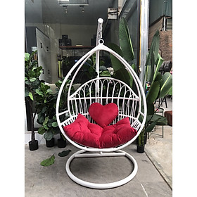 Bộ sản phẩm gồm : + Bộ nệm và 02 gối hình trái tim màu hồng + Thân lồng xích đu được sơn tĩnh điện và được đan nhựa giả mây màu hồng như hình