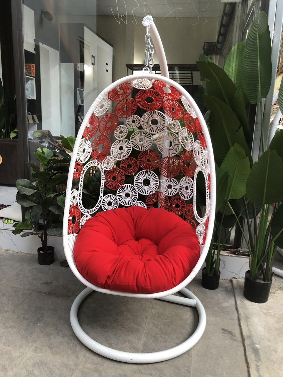 - Chất liệu: Xích đu được làm từ khung sắt sơn tĩnh điện, cuốn mây nhựa cao cấp, nhựa PE giả mây độ bền cao chống chịu được mọi thời tiết khắc nhiệt.