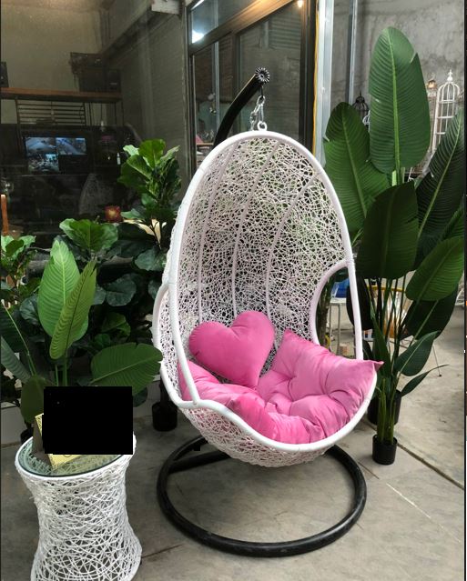 Bộ sản phẩm gồm : + Bộ nệm và 02 gối hình trái tim màu hồng + Thân lồng xích đu được sơn tĩnh điện và được đan nhựa giả mây màu hồng như hình