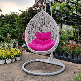 Bộ sản phẩm gồm : + Bộ nệm và 02 gối hình trái tim màu hồng + Thân lồng xích đu được sơn tĩnh điện và được đan nhựa giả mây màu hồng như hình