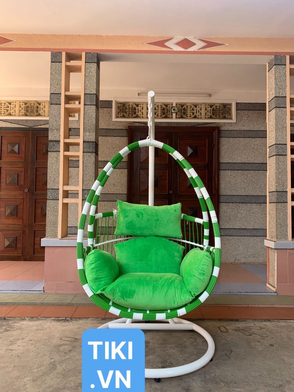 Bộ sản phẩm gồm : - Bộ chân đế xích đu 2 cần treo - Lồng xích đu sợi cotton được đan xương cá đẹp mắt và thẩm mỹ hoàn toàn thủ công - Bộ
