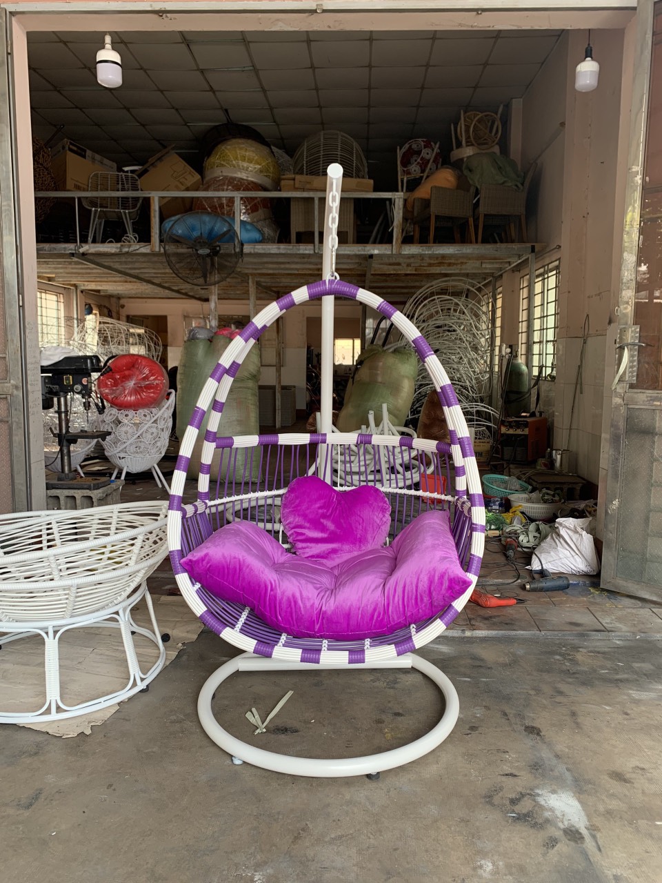 Bộ sản phẩm gồm : + Bộ nệm và 02 gối hình trái tim màu hồng + Thân lồng xích đu được sơn tĩnh điện và được đan nhựa giả mây màu hồng như hình