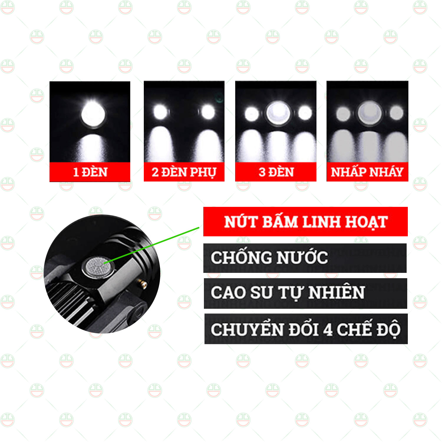 Đèn Super Light 3 Đầu: Sản phẩm được thiết kế tiện dụng, thông minh và gọn nhẹ có phạm vi chiếu sáng cực kì ấn tượng, bạn có thể sử dụng đèn pin để sửa