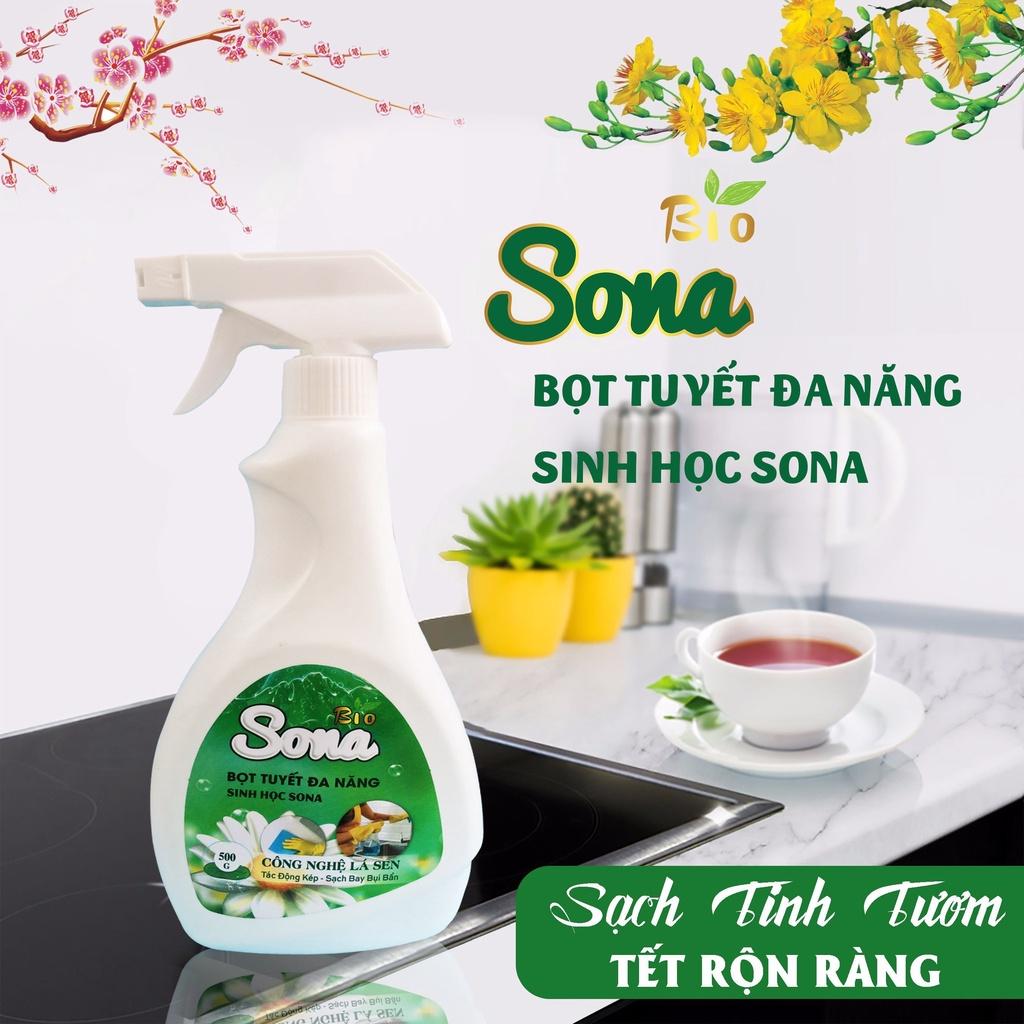 Xịt đa năng tẩy rửa vết bẩn vệ sinh nhà bếp, vệ sinh kính sinh học SONA là sản phẩm được sản xuất từ các thành phần thiên nhiên, giúp cho việc tẩy rửa bàn bếp, bếp, bàn kính, kinh trở nên dễ dàng hơn đặc biệt sản phẩm có khả năng xua đuổi ruồi muỗi rất tốt, được thiết kế dạng bọt tuyết dễ dàng lau chùi mà không để lại mùi, mềm mại với da tay
