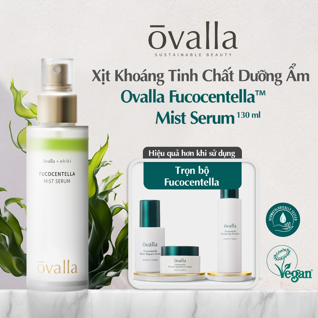 - Xịt khoáng Ovalla là sự kết hợp của Fucocentella mang lại hiệu quả làm dịu da, tạo độ ẩm và đàn hồi trước và cả sau khi trang điểm.