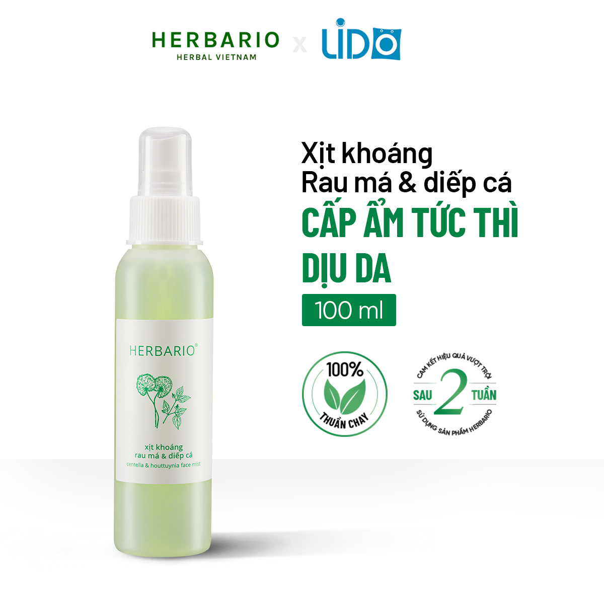 Xịt khoáng rau má & diếp cá herbario 100ml thuần chay 100% cấp ẩm tức thời cho da giúp da không bị khô, làm dịu mềm mại.