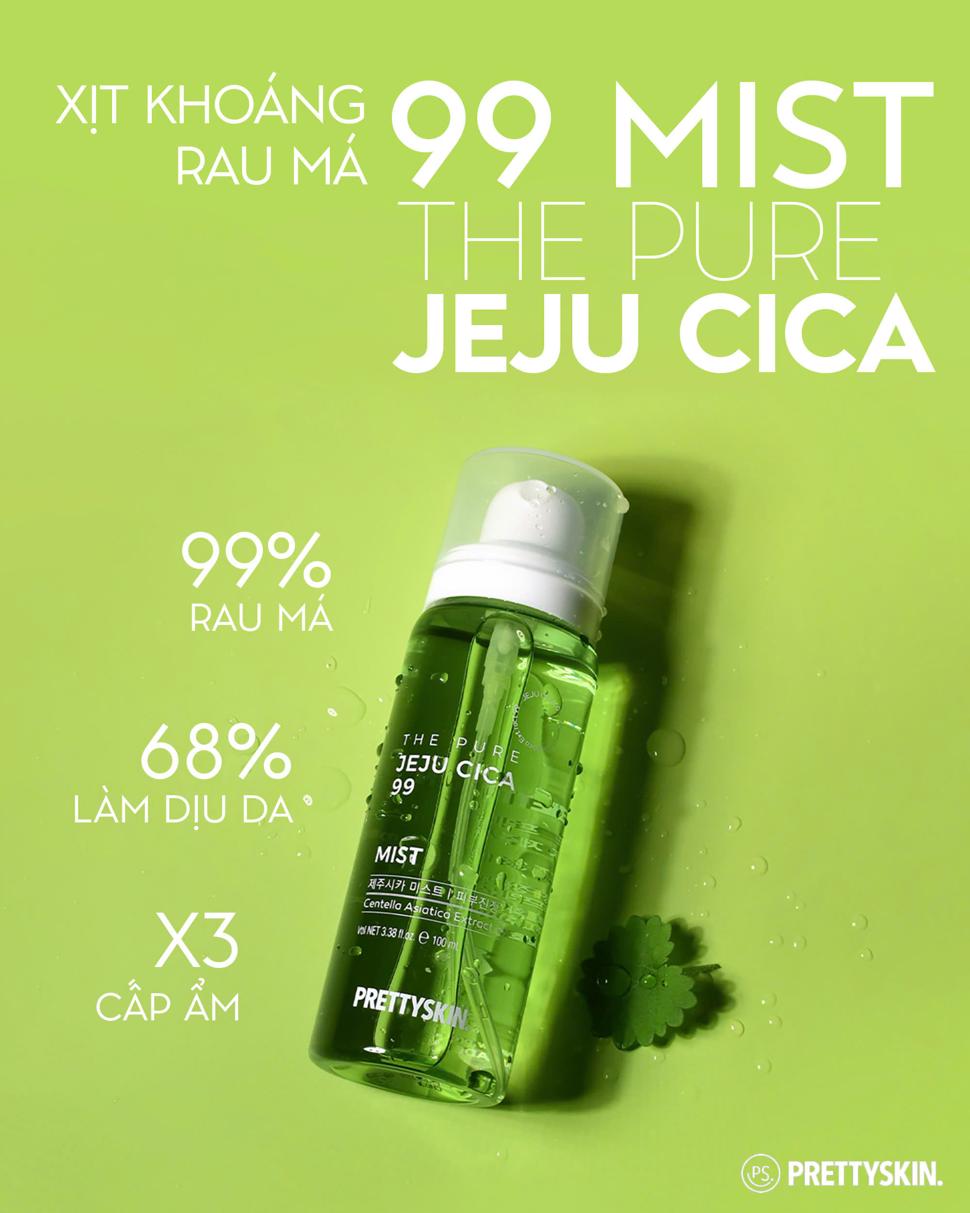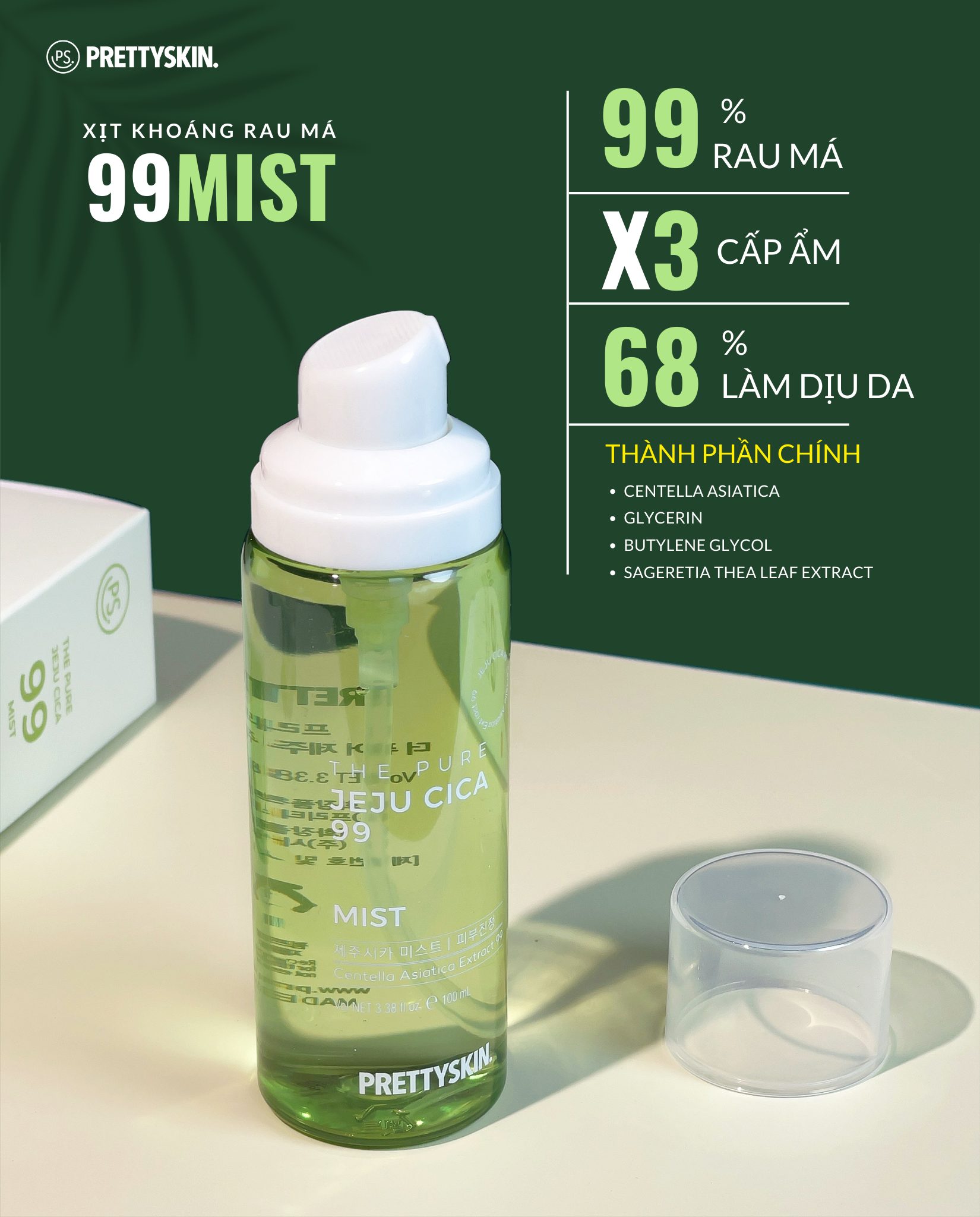 Xịt khoáng rau má Pretty Skin The Pure Jeju Cica 99 Mist 100ml REVIEW