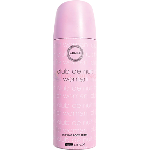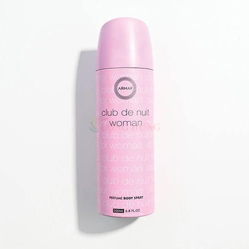Xịt thơm toàn thân Armaf Club De Nuit Perfume Body Spray for Man sở hữu hương thơm cực kì nam tính, mạnh mẽ, cuốn hút, giữ cơ thể luôn thơm mát, tươi mới, tăng thêm sự tự tin và quyến rũ. Sản phẩm thích hợp cho mọi dịp sử dụng từ công việc đến dạo phố hay dự tiệc. Note hương Hương đầu: Chanh vàng, Dứa, Cam Bergamot, Quả lý chua đen, Táo Hương giữa: Gỗ Bạch dương, Hoa nhài, Hoa hồng Hương cuối: Long diên hương, xạ hương, vani, hoắc hương Thông tin cơ bản Nhóm mùi: Hương gỗ cay ấm Dung tích: 200ml   Xịt thơm toàn thân Armaf Club De Nuit Body Spray For Women là mùi hương dành cho nữ, mùi rất thơm và sang, mang mùi hương hoa cỏ. Hương thơm được đánh giá là bản dupe hoàn hảo của Chanel Coco Mademoiselle. Xịt Thơm Club De Nuit thể hiện một hương thơm tinh tế dành cho người phụ nữ với mùi hương đặc trưng của trái cây và bạc hà Mùi hương đặc trưng: Hương chính : Hoắc hương, Hoa hồng, Hương vanilla, Quýt hồng, Xạ hương Hương đầu : Cam bergamot, Hương bưởi, Hương cam Hương cuối : Xạ hương, Hoắc hương, Hương vanilla, Cỏ hương bài   Hướng Dẫn Sử Dụng :