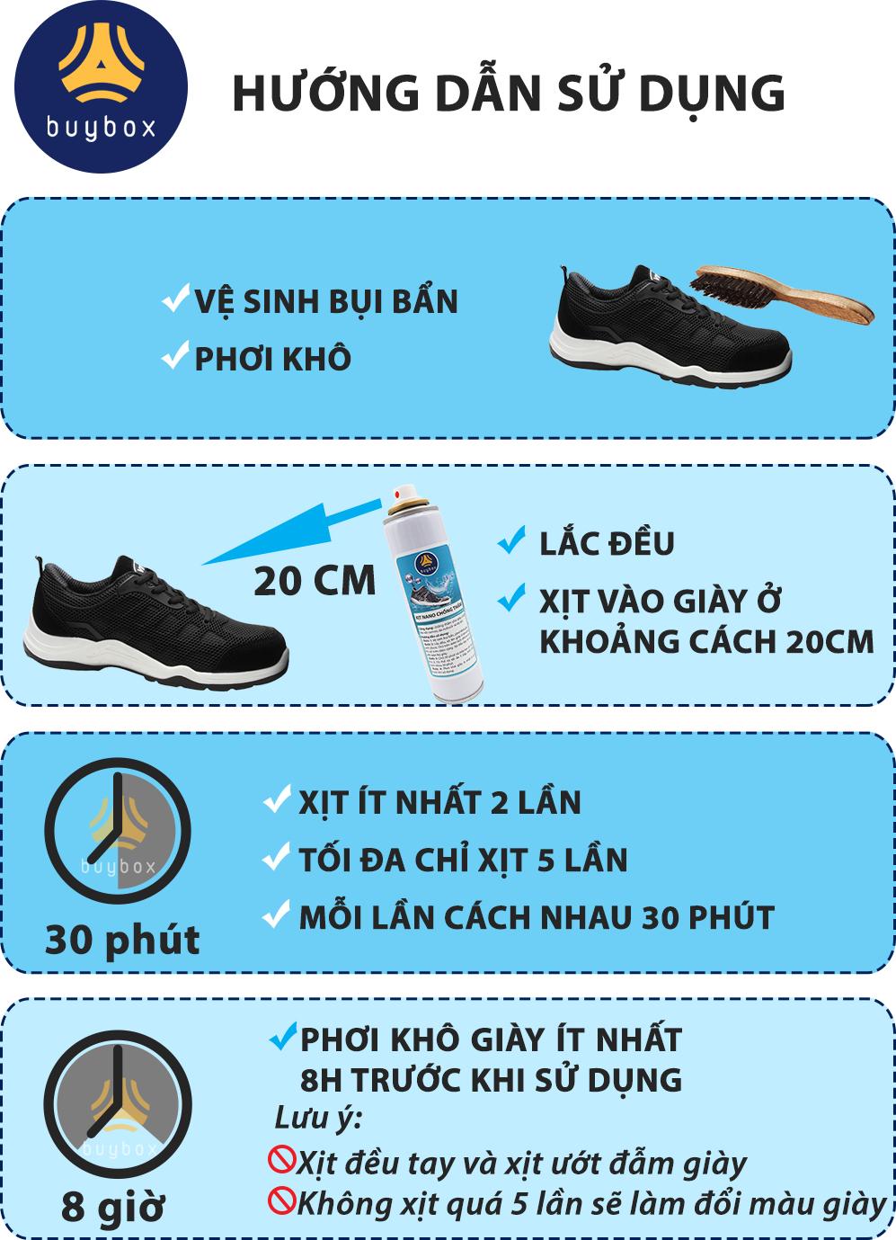 - Công dụng: phủ nano chống thấm nước và chất lỏng cho giày, túi xách hiệu quả HƯỚNG DẪN SỬ DỤNG