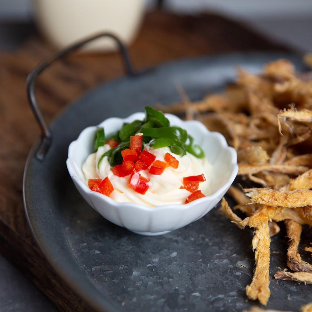 THÔNG TIN SẢN PHẨM Thành phần: dầu đậu nành, trứng gà, giấm, đường, muối, protein đậu nành, chất tăng mùi, Trọng lượng: 130g Hạn sử dụng: 8 tháng kể từ ngày sản xuất in trên