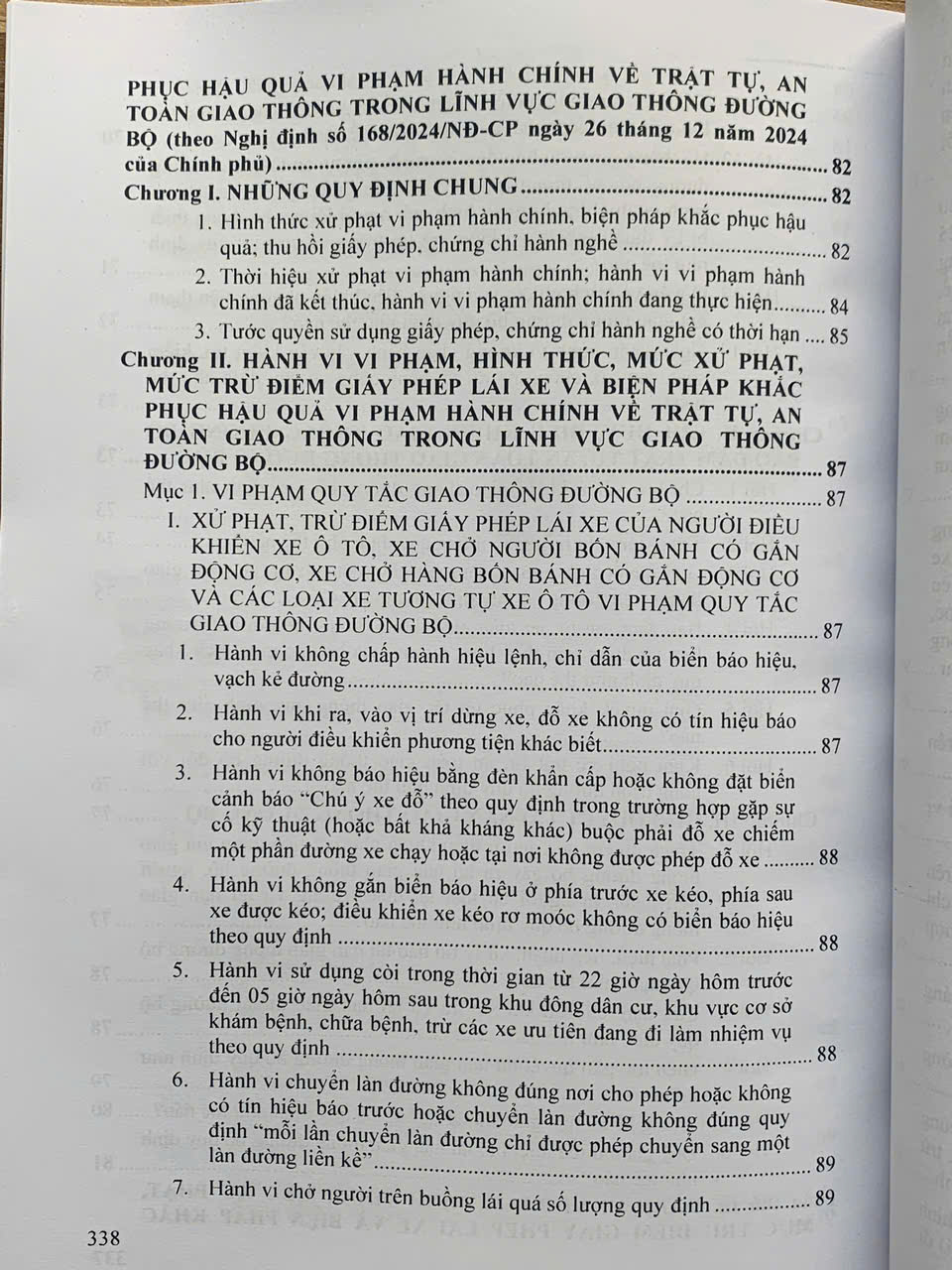 Ngày 26 tháng 12 năm 2024, Chính phủ đã ban hành Nghị định số 168/2024/NĐ-CP của Chính phủ quy định xử phạt vi phạm hành chính về trật tự, an toàn giao thông trong lĩnh vực giao thông đường bộ; trừ điểm, phục hồi điểm giấy phép lái xe. Nghị định quy định xử phạt vi phạm hành chính bao gồm: hành vi vi phạm hành chính; hình thức, mức xử phạt, biện pháp khắc phục hậu quả đối với từng hành vi vi phạm hành chính; mức trừ điểm giấy phép lái xe đối với từng hành vi vi phạm hành chính; trình tự, thủ tục, thẩm quyền trừ điểm, phục hồi điểm giấy phép lái xe để quản lý việc chấp hành pháp luật về trật tự, an toàn giao thông đường bộ của người lái xe. Nhằm tuyên truyền sâu rộng pháp luật về an toàn giao thông, tạo sự chuyển biến mạnh mẽ từ nhận thức đến hành động của người tham gia giao thông Nhà Xuất Bản Hồng Đức xuất bản cuốn sách.