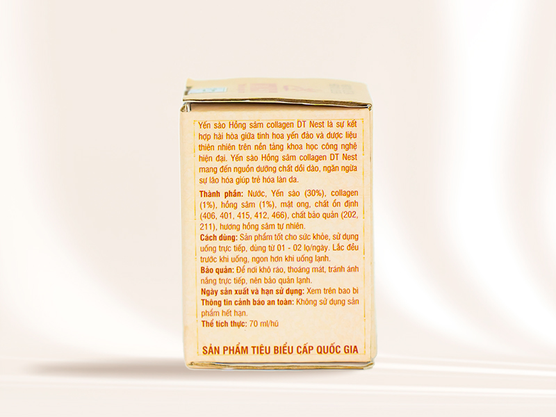 Yến sào Hồng sâm Collagen nguyên chất DT NEST Khánh Hòa với 30% yến từ 100% sợi yến thật - Hũ 70ml