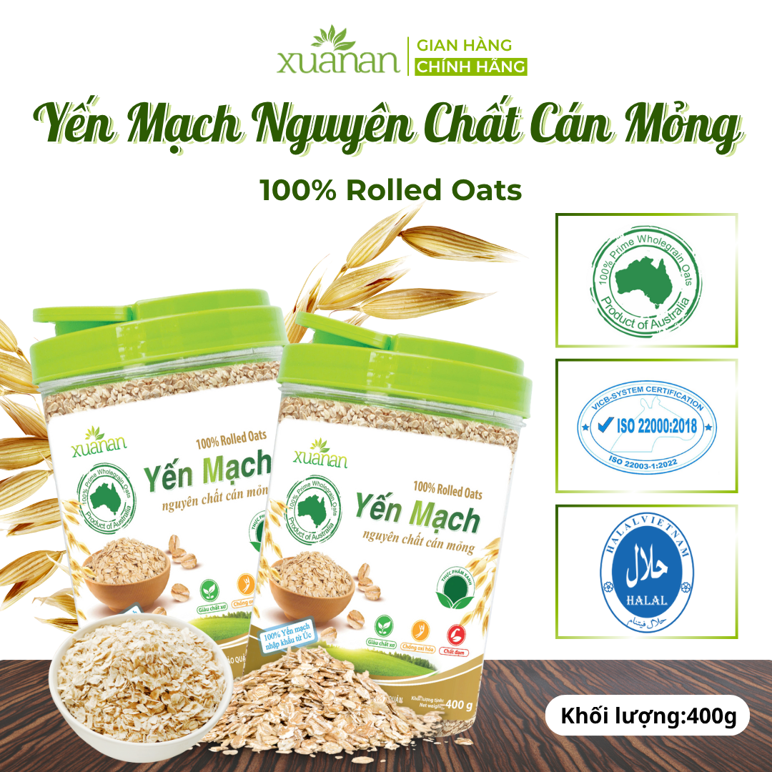 YẾN MẠCH NGUYÊN CHẤT CÁN MỎNG – HỦ 400G Yến mạch nguyên chất cán mỏng Xuân An là sản phẩm yến mạch chất lượng cao, được nhập khẩu trực tiếp từ Úc, nơi nổi tiếng