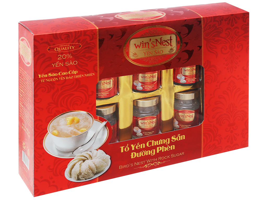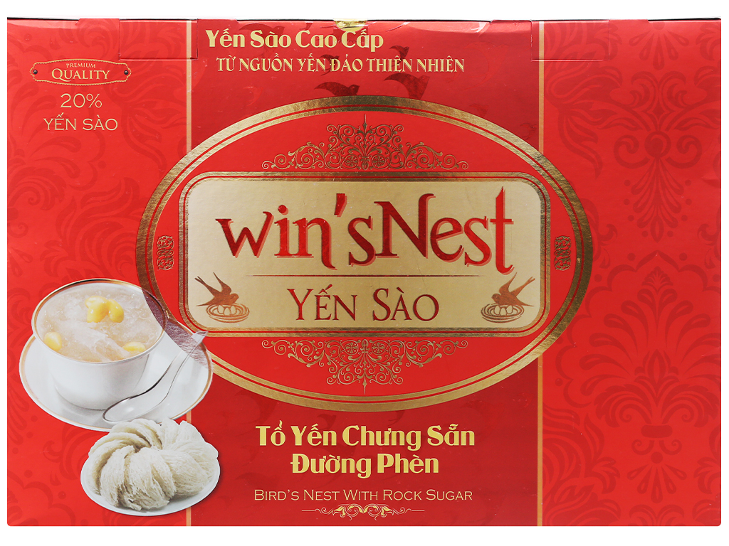 Yến sào cao cấp win'sNest tổ yến chưng sẵn đường phèn được sản xuất từ nguồn yến đảo thiên nhiên, là một sản phẩm của công ty wincofood. Được sản xuất bằng phương pháp cổ truyền trên dây chuyền đạt tiểu chuẩn an toàn thực phẩm.