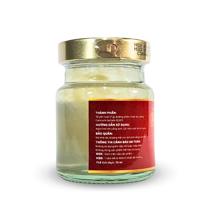 - Yến sào: Hỗ trợ tăng sức đề kháng cho cơ thể, chống lão hóa, ổn định thần kinh, trí nhớ, kích thích tiêu hóa, phục hồi sức khỏe nhanh chóng trong thời gian dưỡng bệnh. Đối tượng sử dụng: thích hợp cho mọi đối tượng đăc biệt trẻ từ 3 tuổi trở lên Sản xuất: Việt Nam Thành phần: Nước, , Yến sào (25%), đường phèn (4%) , chất ổn định (E406), hương liệu dùng cho thực phẩm. Cách dùng: - Lắc nhẹ trước khi uống, ngon hơn khi uống lạnh, tránh đun nóng sản phẩm trước khi sử dụng. - Uống trực tiếp từ lọ. --Uống từ 1 - 2 lọ/ngày. Sản phẩm thích hợp cho người lớn tăng sức đề kháng giúp cơ thể khỏe mạnh, phục hồi sức khỏe cho người bệnh, Không sử dụng sản phẩm khi hết hạn, nên sử dụng một lần sau khi mở nắp.