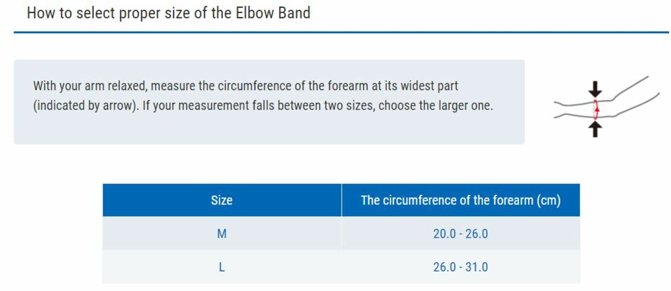 - Cách sử dụng Đặt miếng đệm khuỷu tay 4 đến 5 cm bên dưới (gần cổ tay) khu vực bạn cảm thấy đau Tips on how to apply the Elbow Band Place the elbow pad 4 to 5 cm below (closer to the wrist) the area where you feel pain